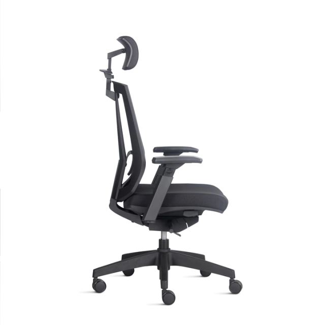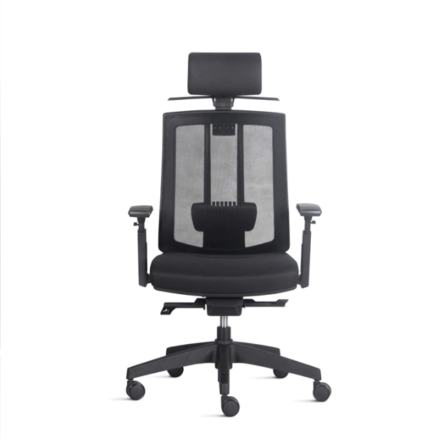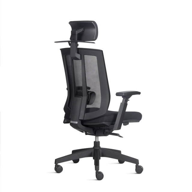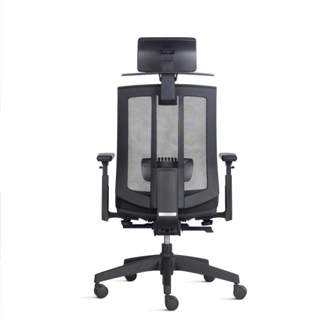 Encosto em tela flexível 100% poliéster de alta resistência ou espuma injetada. Apoio lombar independente, com ou sem regulável na altura.
